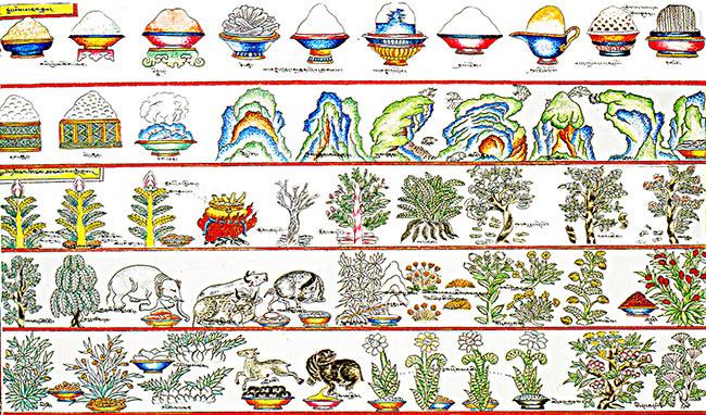 青藏高原地域的遼闊和自然條件的復雜多變,決定了它豐富多彩的動植物資源。據(jù)多年來調(diào)查采集的標本和搜集的資料統(tǒng)計,已入藏藥的植物計有191科682屬2085種。其中菌類植物5科5屬50種;地衣類4科46種;苔蘚類5科5屬5種;蕨類30科5屬5種裸子植物52屬47種植3變種;被子植物131科581屬1895種141變種。此外,尚有動物藥57科111屬159種,礦物藥50余種。常用藏藥中有三分之一用藥與中藥相同。藏區(qū)本地草藥占常用藏藥一半以上。